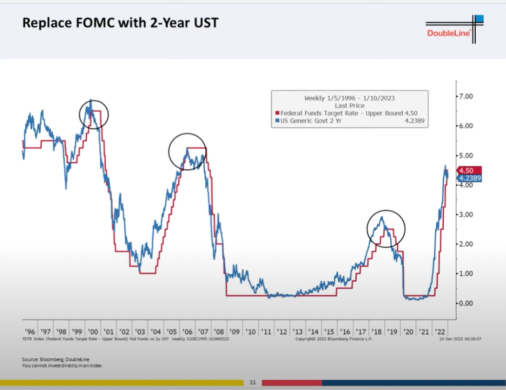 新債券王として知られるジェフリー・ガンドラック氏は、FF金利の行方を知りたければ、FED(連邦準備制度)の動向ではなく債券市場を見るべきだという従来の意見を改めて述べました。
