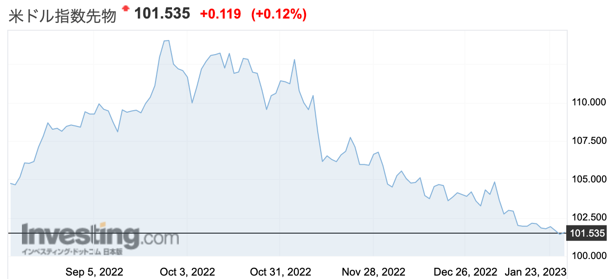 まず、米国金利については、インフレ率が数ヶ月後には前年比+4%程度まで下がっているというのがガンドラック氏の予想です。5%に満たない金利でもインフレ率は9%から6%台まで下がってきましたし、経済弱体化の指標もあちこちで散見されることから、金利は3%もあれば十分ということでしょう。