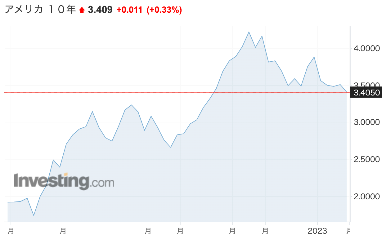市場はFEDの姿勢を鳩派と受け止めたため、金利は3.4%ギリギリまで一段と低下しました。