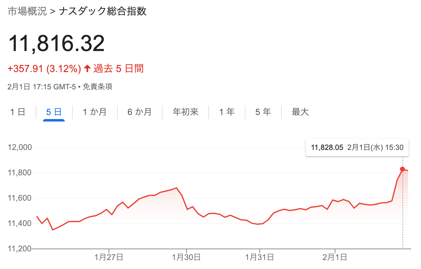 それに伴い、株価も上昇しました。特に、高金利に弱いグロース株を中心に構成されるナスダック指数は大きく上昇しました。