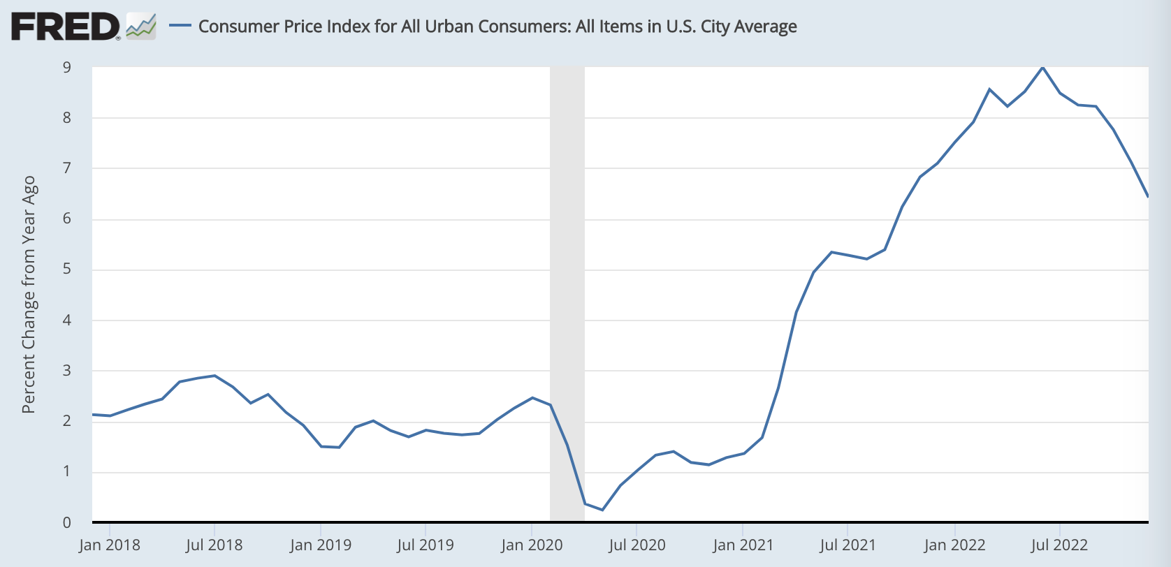 まず、こちらは何度も書いていますが、昨年の7月をピークに米国のインフレ率は低下を続けています。