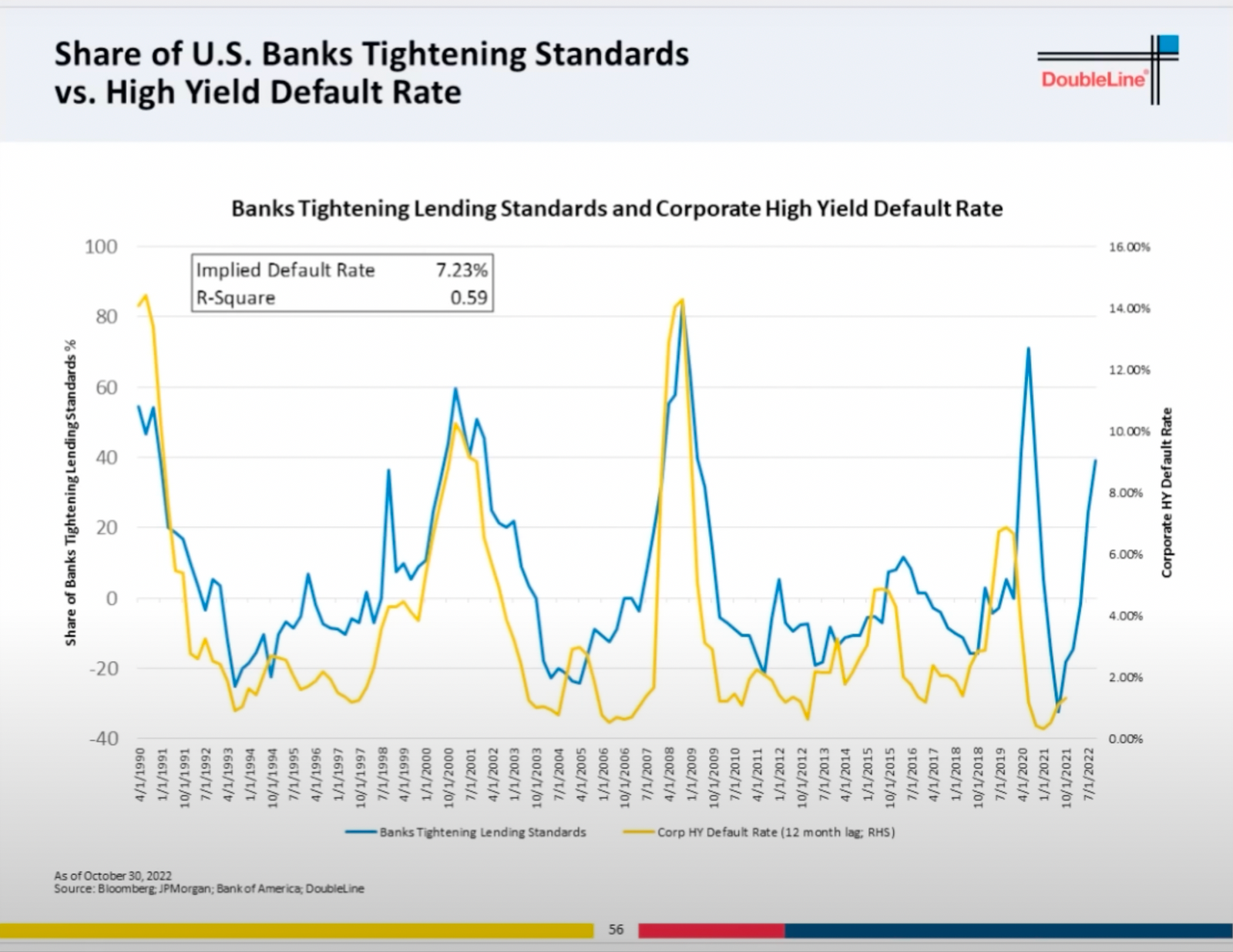 ガンドラック氏が示した景気後退の前兆を示す指標としては、銀行の融資審査基準の引き締め率もあります。
