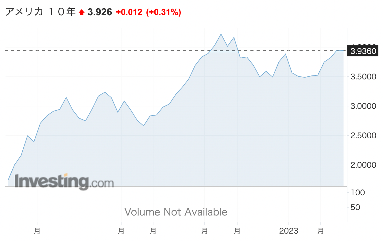 では、米国長期金利はどのように推移しているのかといえば、以下の通りです。
