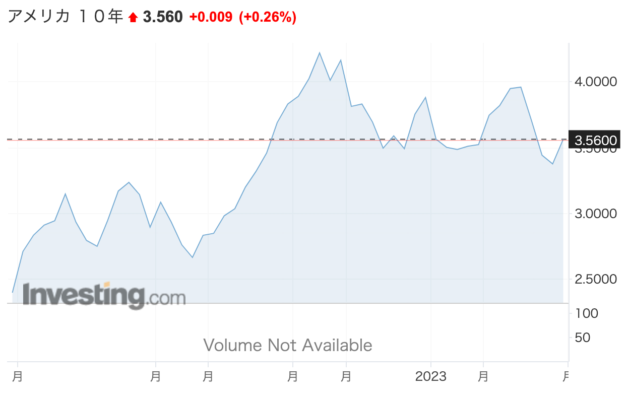 一方で、米国債金利を見てみると、長期金利は3.5%あるので、景気後退はまだ十分に織り込まれきっていないと考えて良いでしょう。
