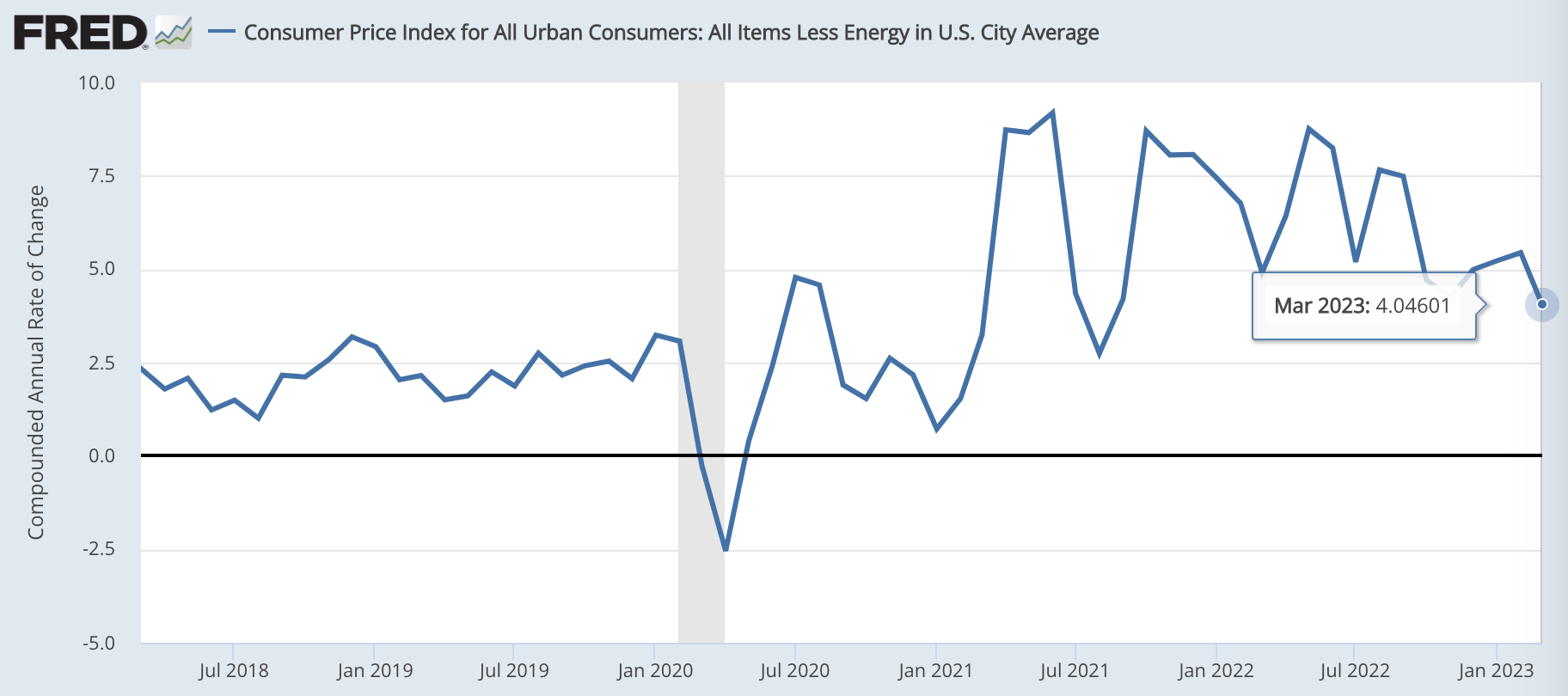 昨年の夏頃には9%台に迫る勢いだったインフレ率も、FEDの急速な利上げを受けて、ついに4%台まで落ち着いてきました。