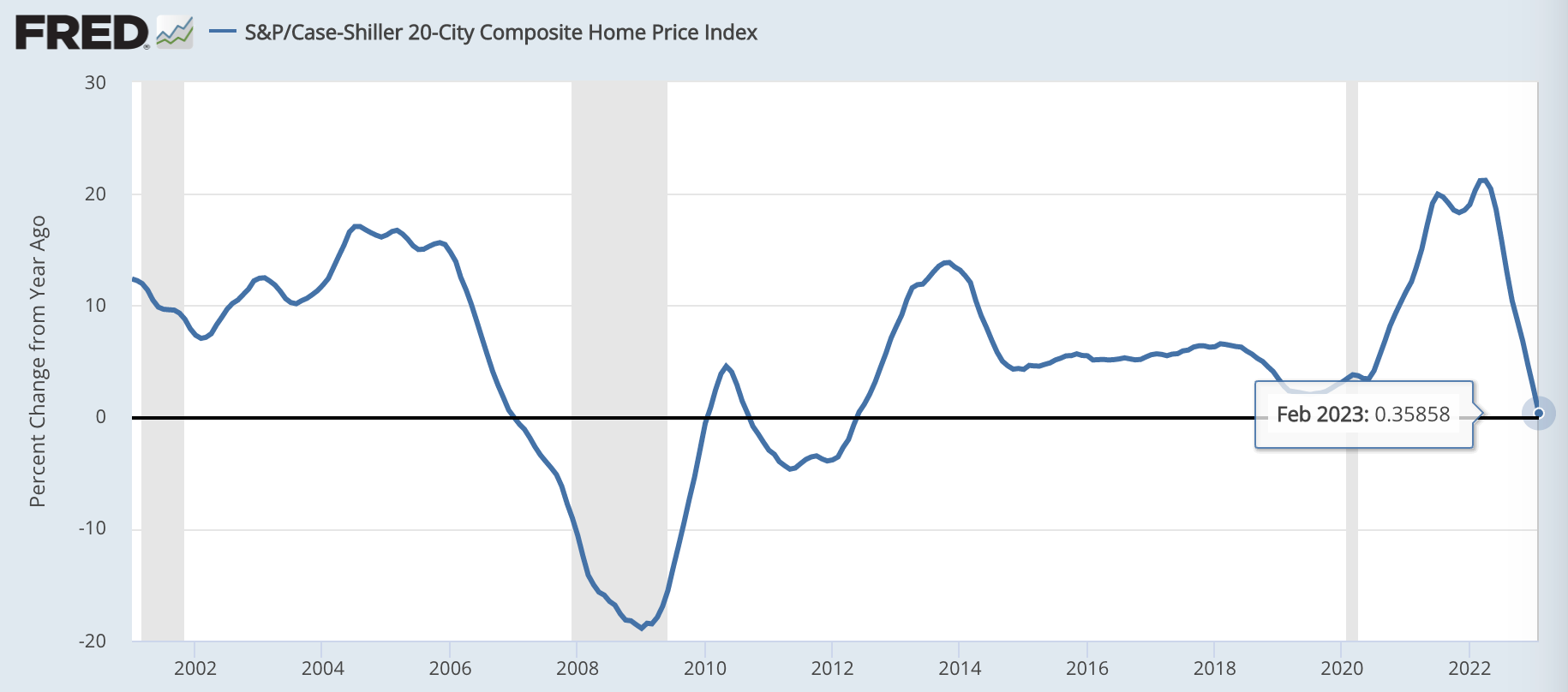 2023年4月25日に、2023年2月分のケースシラー住宅価格指数が発表されました。