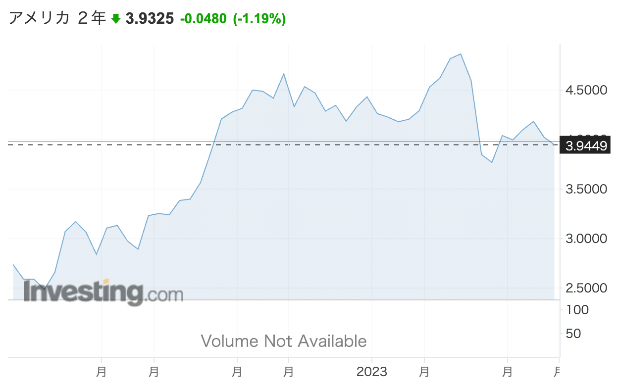 現在、アメリカでは利上げが行われており、今のところは5月の利上げを最後に5.25%でFF金利は水平飛行に入ると考えられています。ただし、インフレ率はまだ5%近くあることを考えると、目先すぐに利下げにまで進むことは考えにくいです。