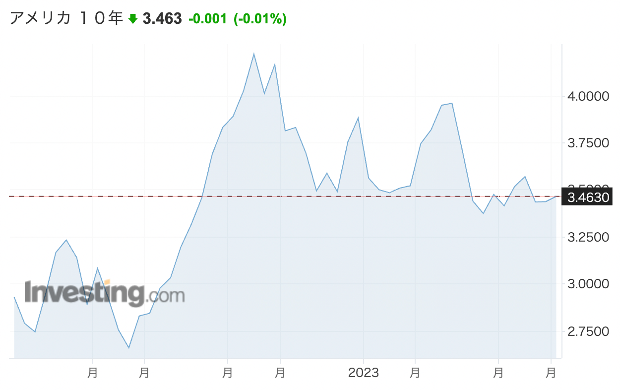 その後、3月中旬にシリコンバレー銀行の経営破綻に端を発する地銀の破綻ラッシュが続いたため、金利は大幅に低下しました。