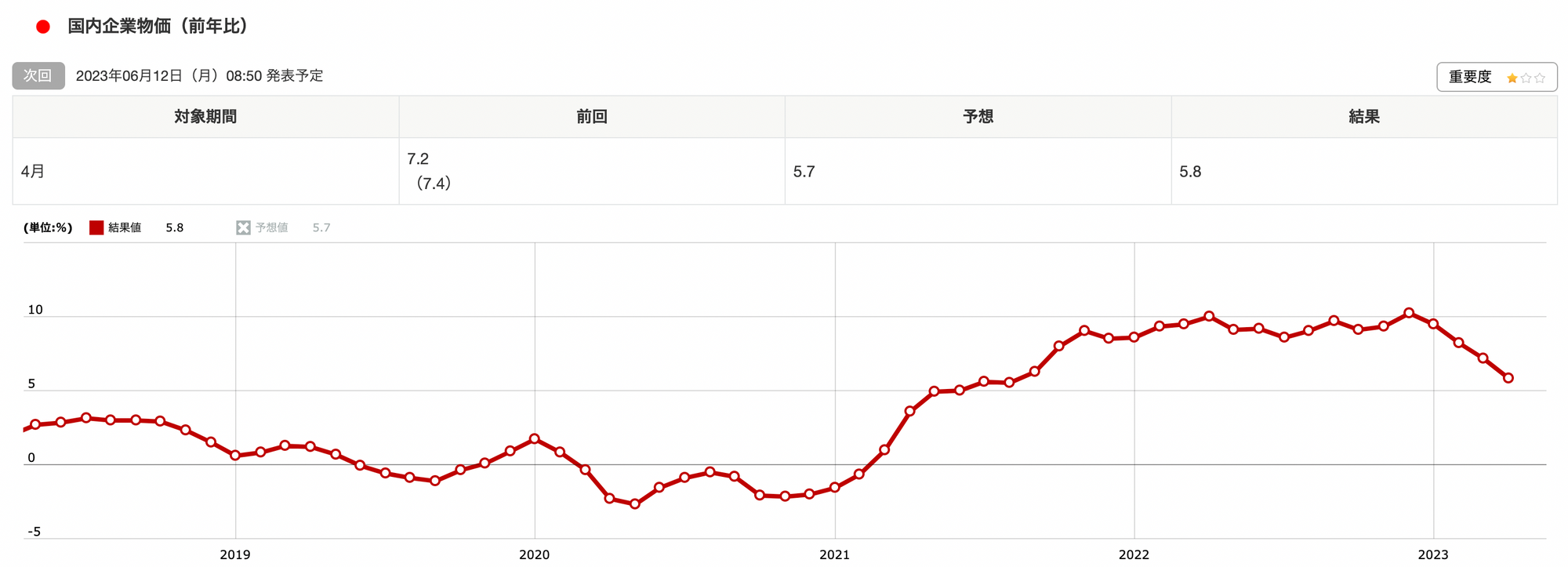 日本の国内企業物価指数は前年比+5.2%であり、企業物価のインフレ率は前回の7.2%から大幅に減速しました。今回は軽めの内容となります。