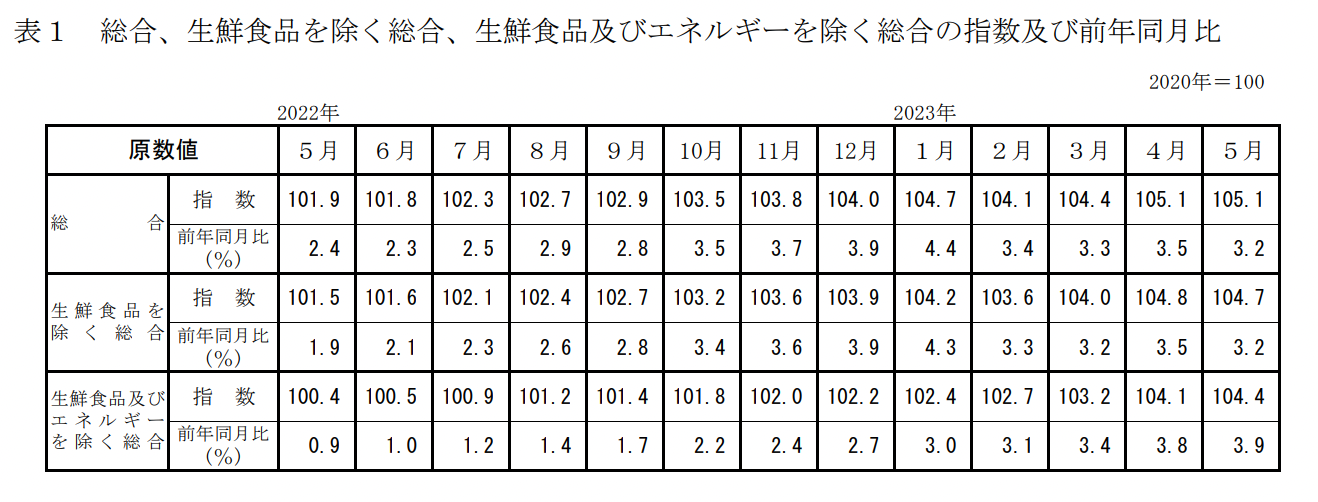 2023年5月26日に発表された東京都物価指数によると、日本のインフレが加速を続けていることが確認されました。東京都物価指数の「総合」は前年比+3.5%と前回の+3.1%から減速しましたが、これはエネルギー価格の下落が要因であり、「エネルギー価格および生鮮食品を除く総合」では+3.9%と前回の+3.8%から加速しています。