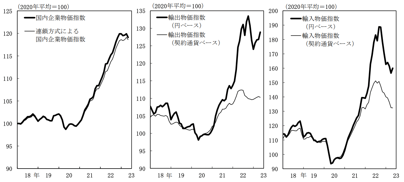 もしも輸入物価が再び上昇トレンドに転じたなら、それは企業物価指数に影響を与えて、いずれは消費者物価指数にも影響を与えるでしょう。