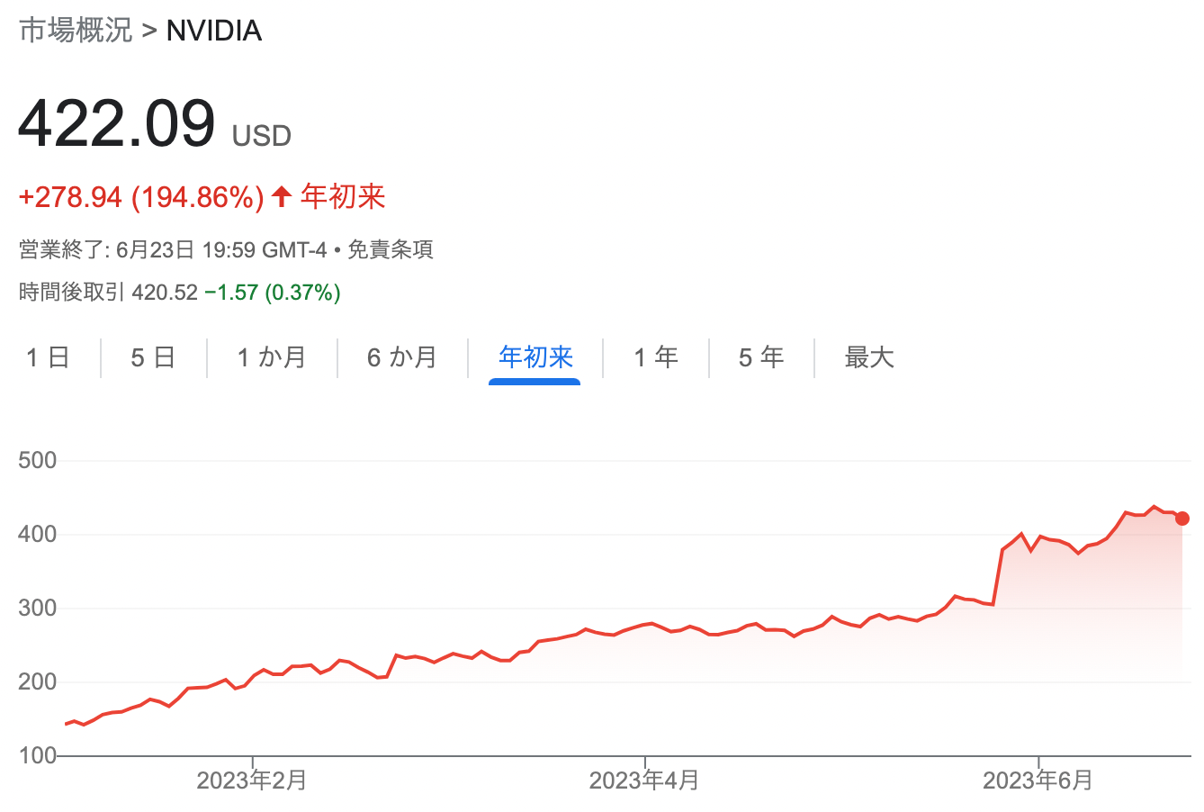S&P7の筆頭格はエヌビディアでしょう。AIブームによって、最先端の半導体を製造しているエヌビディアの株価は年初来で3倍ほどになっています。
