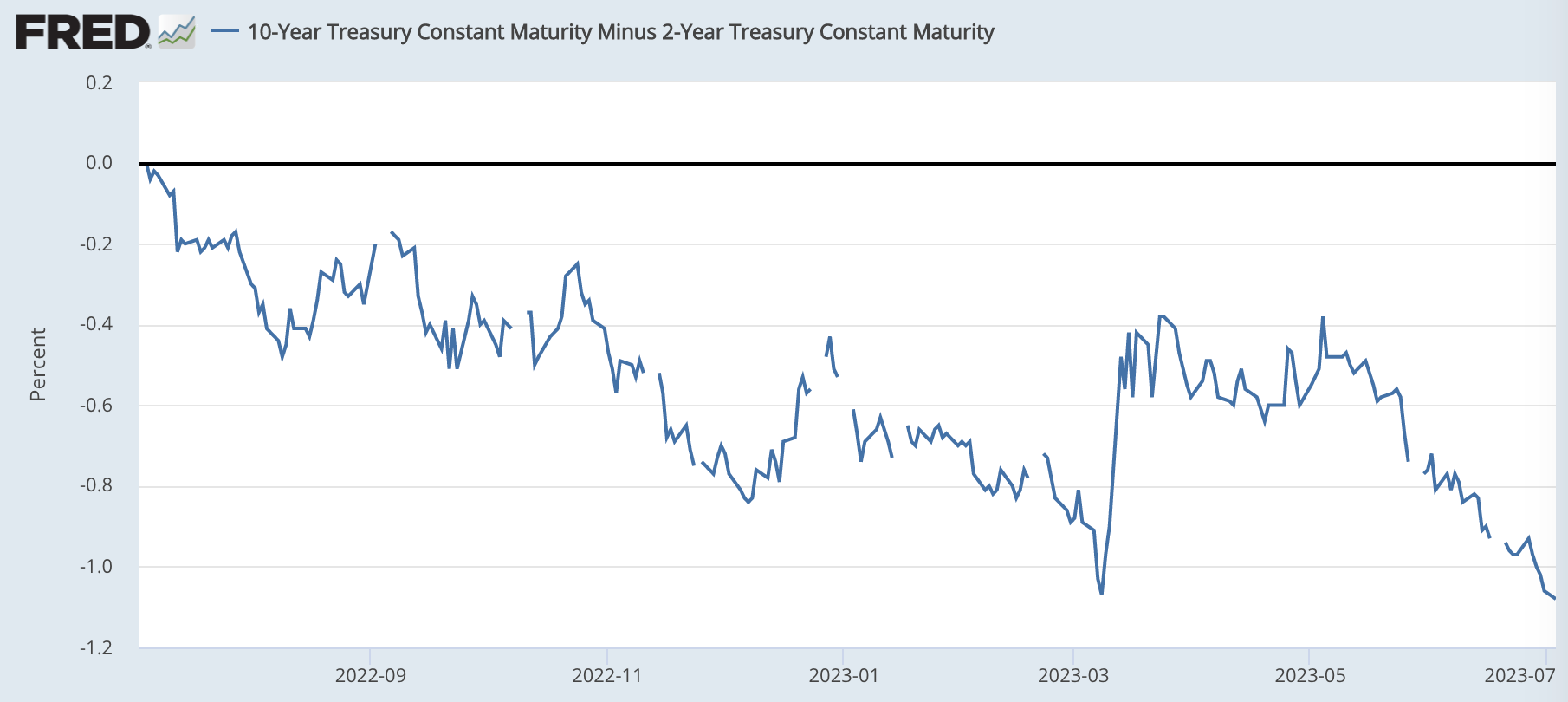 つまり、逆イールドが解消する、言い換えると、10年金利 - 2年金利が0になるためには、2年金利が3.5%〜4.0%あたりまで下がる必要があります。