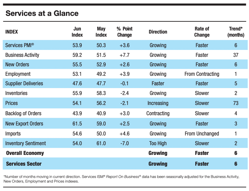 6月ISM非製造業景況指数:力強く反発、サービス業の景気は強い