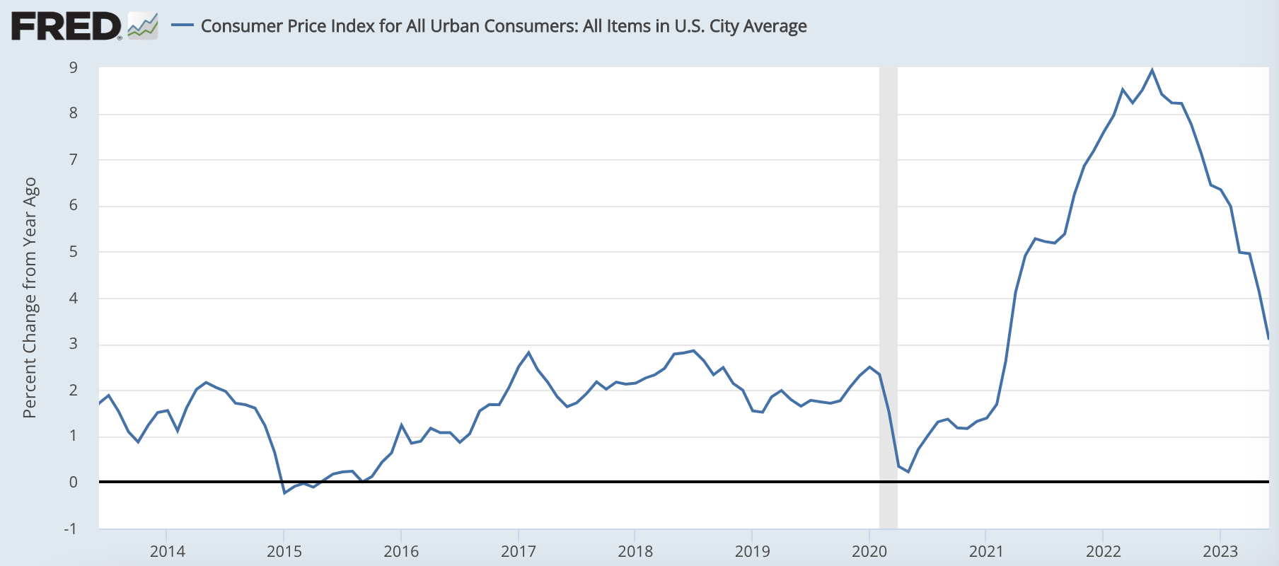 上のグラフを見ていただくと分かるとおり、アメリカのインフレ率は前年比+3.0%まで下がってきました。PCEデフレーターも前年比+3.0%です。