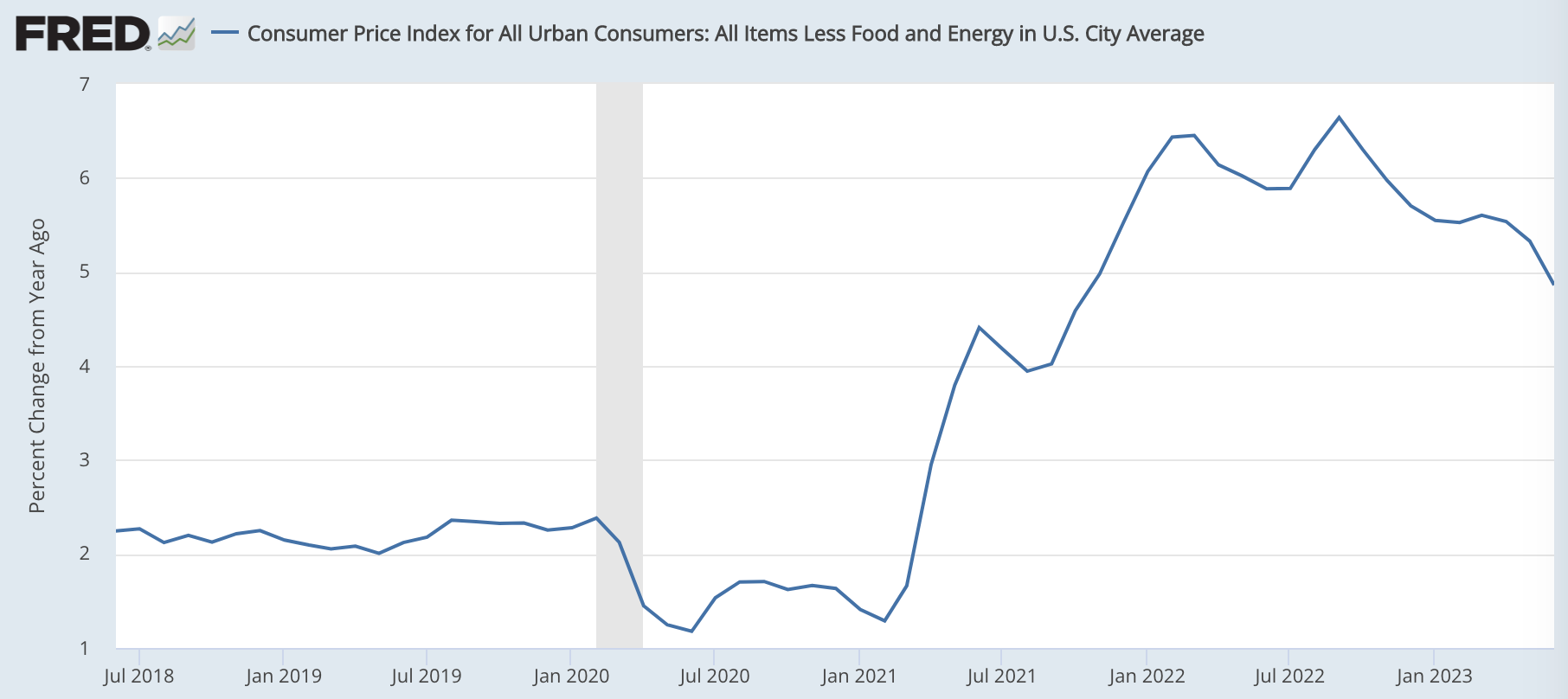 また、今後はエネルギー価格のデフレ効果は失われていきますが、エネルギーと食料を除いたコアインフレ率も前年比+3.8%程度まで下がっています。