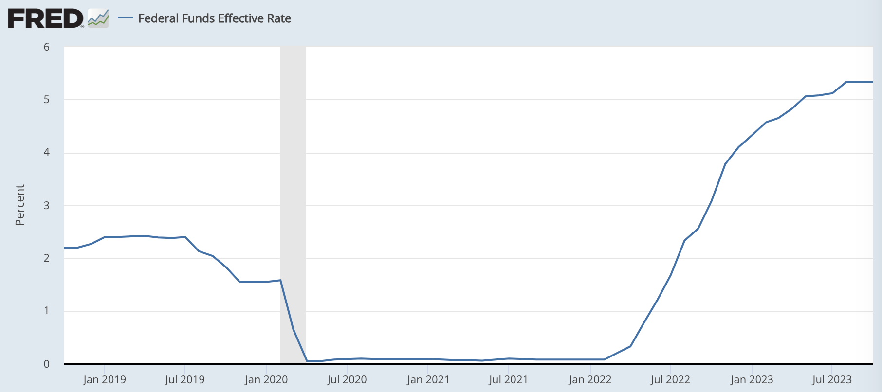 7月の利上げを最後に、米政策金利は横ばいが続いており、2022年から急ピッチに進められてきた利上げは基本的に終わったと考えて良いだろう。