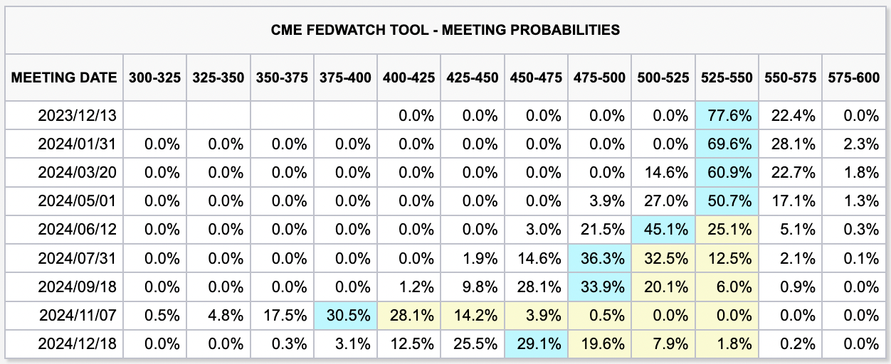市場参加者の金利推移予想をみても、利上げは打ち止めで、来年の夏頃からの利下げを織り込んでいる。