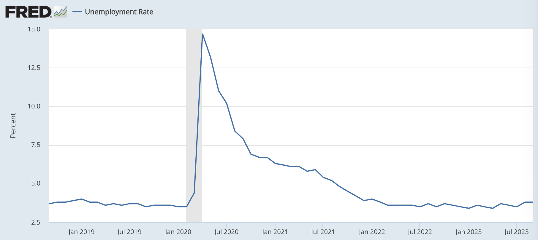 一方で、失業率は3.8%と底打ちをして上昇に転じた様子を見せている。