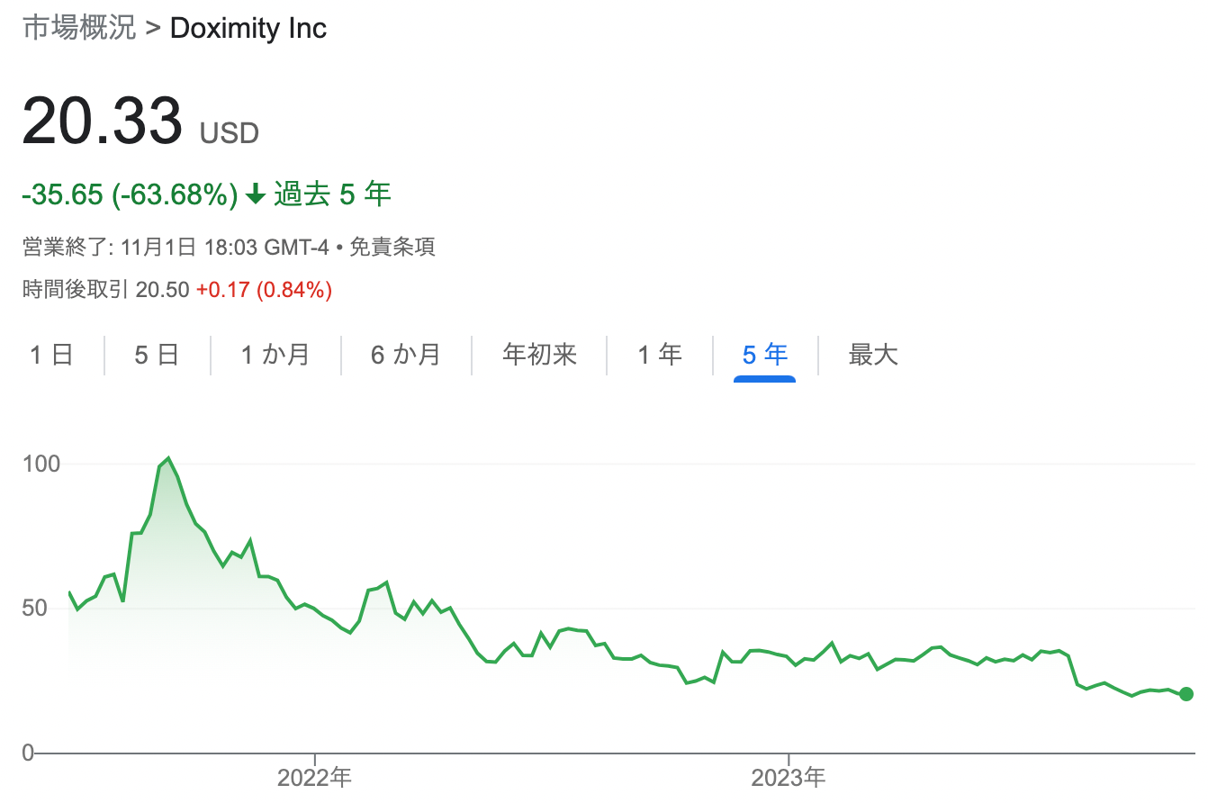たとえば、エムスリーの海外版であるDoximityは株価がピークから5分の1になっている。