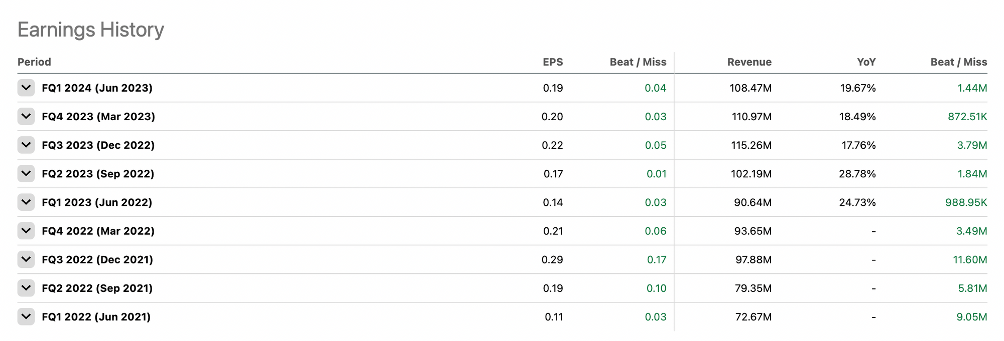 では、業績が悪化しているのかといえば、売上・利益ともに安定してアナリスト予想を上回っており、売上は2桁成長を続けている。