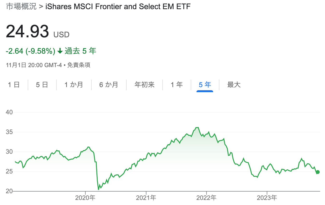 本ニュースレターでも何度か紹介してきたETFの$FMは新興国(BRICS)よりもさらに小さなフロンティア国に投資を行うETFだ。具体的には、ベトナムやルーマニア、アラブ諸国などの企業が投資対象となっている。