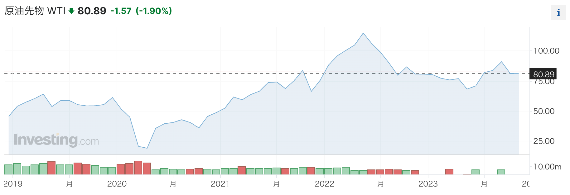 最初に原油だが、原油は多くの生産・消費活動を支えているため、原油価格の上昇は生産・消費活動のコスト増につながる。それは当然ながら経済全体に悪影響を与える。