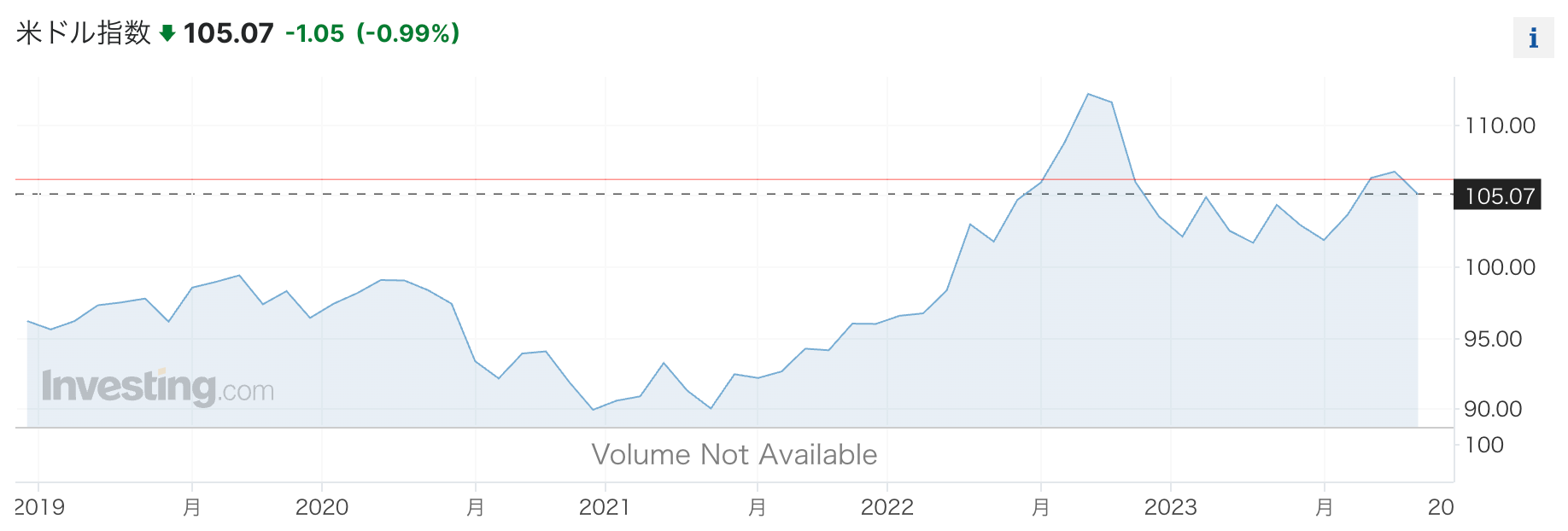 最後にドルだが、ドル高も米国の人件費が高騰することを意味するため、経済活動には悪影響である。金利の上昇によって米国債の投資妙味が高まったこともあり、米ドルの買いが進み、2022年に大きく上昇した。