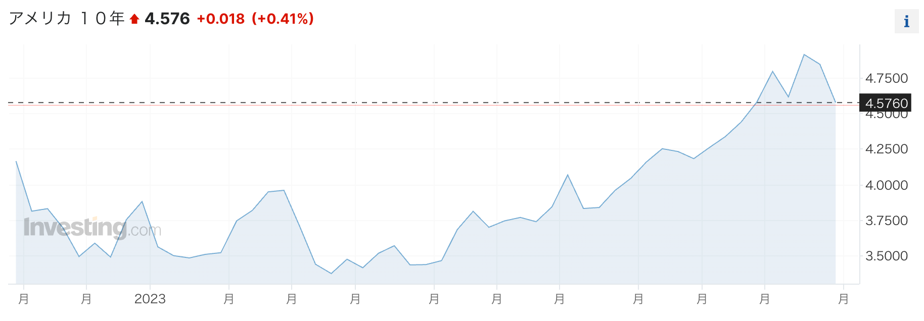 しかし、その後の米国経済は(シリコンバレー銀行の破綻などがあったものの)非常に強く推移した。それに伴い、金利は上昇に転じると、先月にはついに10年金利が5%にタッチした。