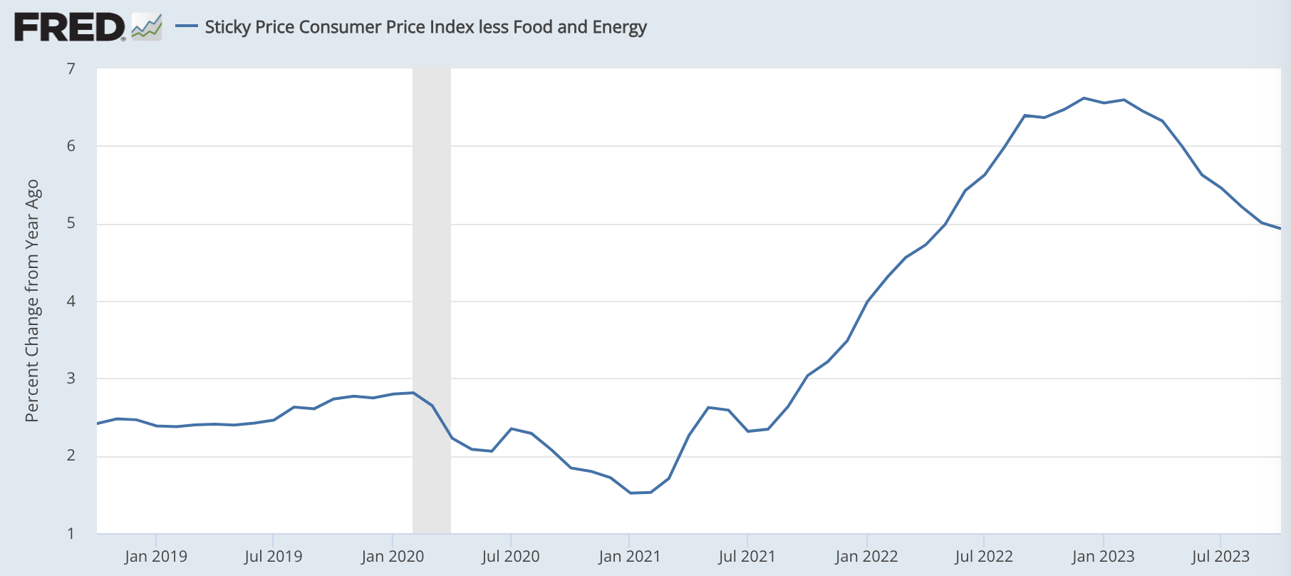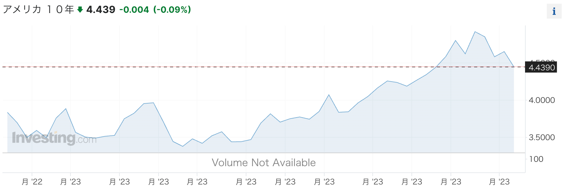 コアインフレ率が+4.9%あるので、今の5.25%〜5.50%という政策金利はしばらく下がらないだろうが、このままインフレ率の低下トレンドが続くなら、さらなる利上げもないだろう。