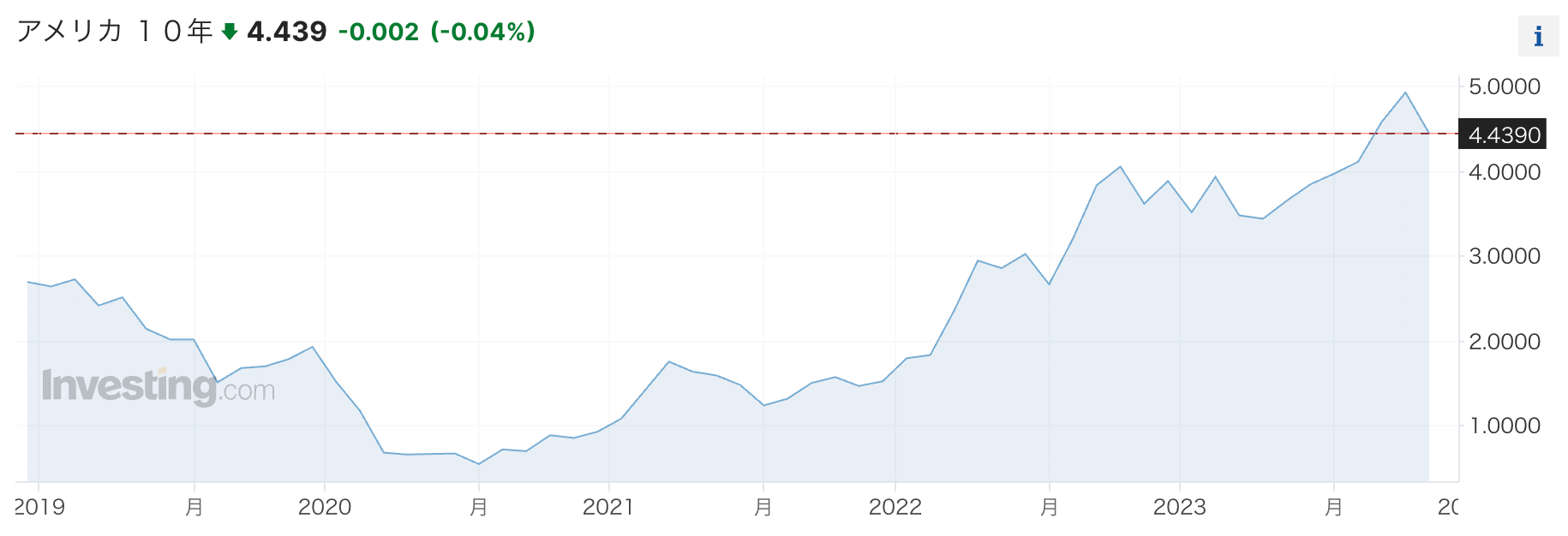 金利の低下を受けて、昨年の10月頃からS&P500は上昇を始めた。
