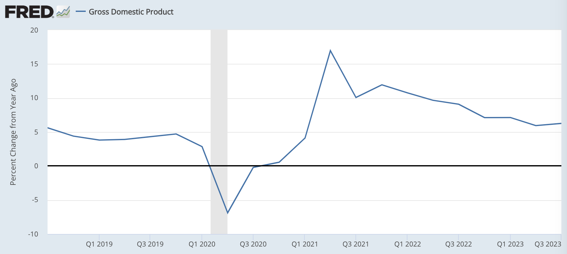 また、景気後退は訪れず、米国GDPは前年比+5%以上の強い数値が続いた。