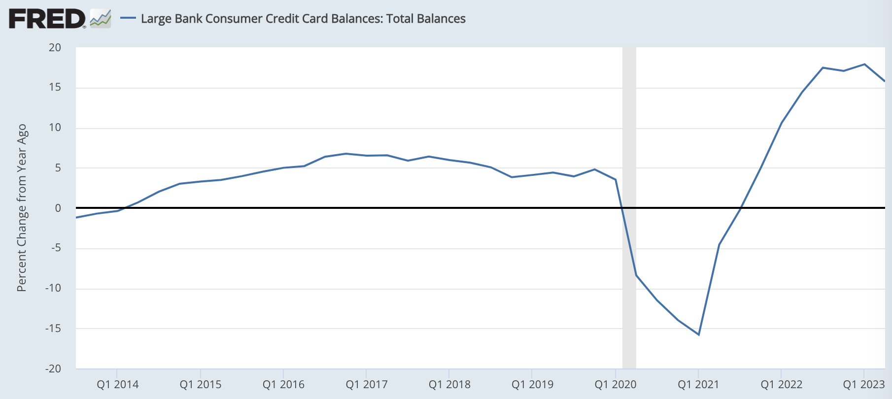 消費者のクレジットカード残高は、新型コロナで一時的に減ったという要因もあるが、前年比+15%という過去にない水準で増加している。