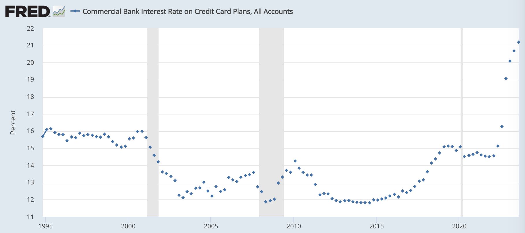 その残高にかかる利息は、昨年からの金利上昇を受けて、21.19%まで上昇している。