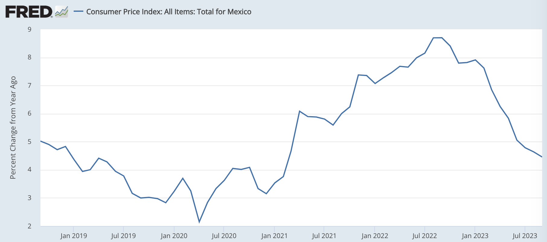 多くのラテンアメリカの国々は金利を早々に急速に引き上げた。彼らの判断は、経済を長い目で見た場合におそらく正しかったと思う。メキシコの失業率は非常に低く、インフレ率も減速している。だから、メキシコはおそらくインフレを克服できるだろう。